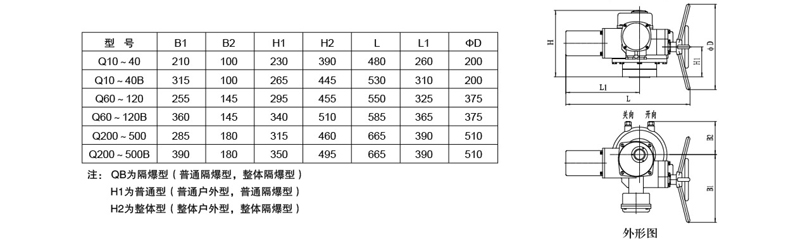 常規回轉電動閥門驅動裝置 > Q型部分回轉整體型電動裝置