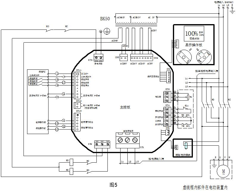 4.7.1.3 主控板:主控板安裝在機(jī)身內(nèi),內(nèi)置微處理器,實(shí)現(xiàn)電動(dòng)執(zhí)行器智能控制。主控板主要功能包括:相序識(shí)別電路;控制電源處理;漏電檢測電路;模擬信號(hào)輸出控制;開關(guān)信號(hào)輸入檢測;與面板通信處理等。