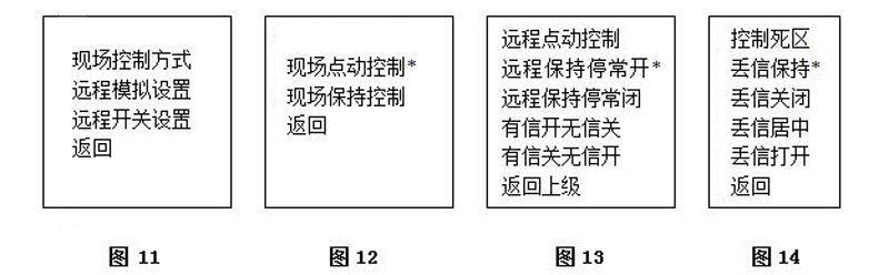 A) 現(xiàn)場控制方式如(圖 12):現(xiàn)場控制方式可選擇點(diǎn)動(dòng)或自保持兩種模式如(圖 12)。通過操作旋鈕的打開操作,可移動(dòng)光標(biāo)位置。在光標(biāo)停留選項(xiàng)上,通過操作旋鈕的關(guān)閉操作,確認(rèn)選中該選項(xiàng)。被選中的選項(xiàng),將被標(biāo)注“*”